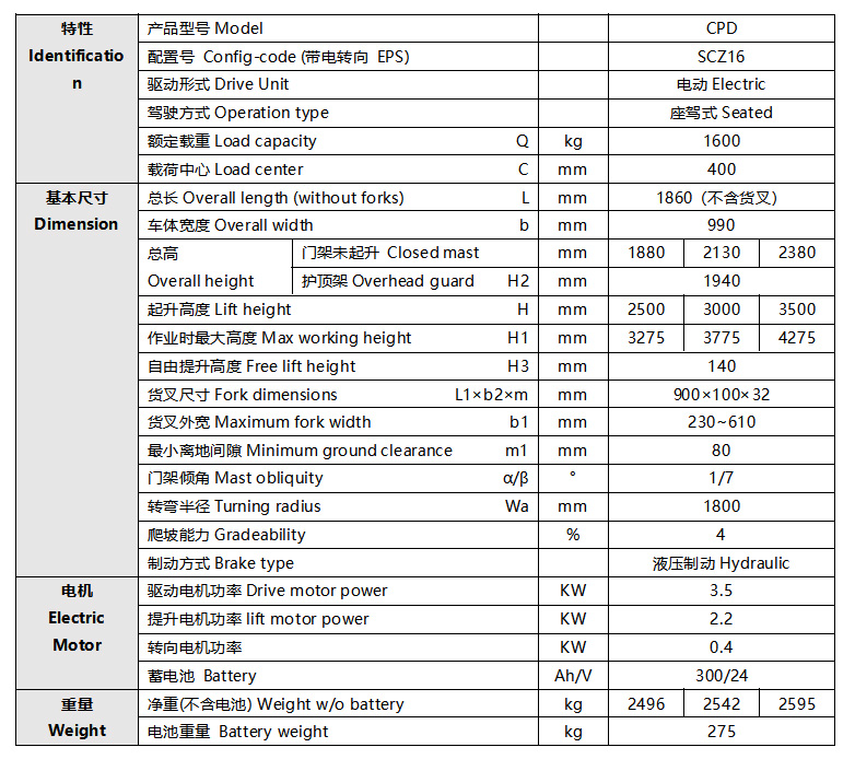 CPDSCZ電動(dòng)叉車(chē)1.6T電轉(zhuǎn)向