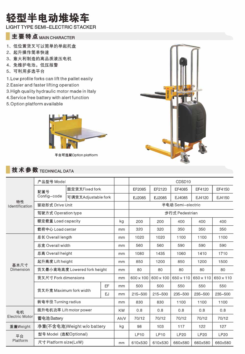 CDSDEF/EJ輕型半電動堆垛車
