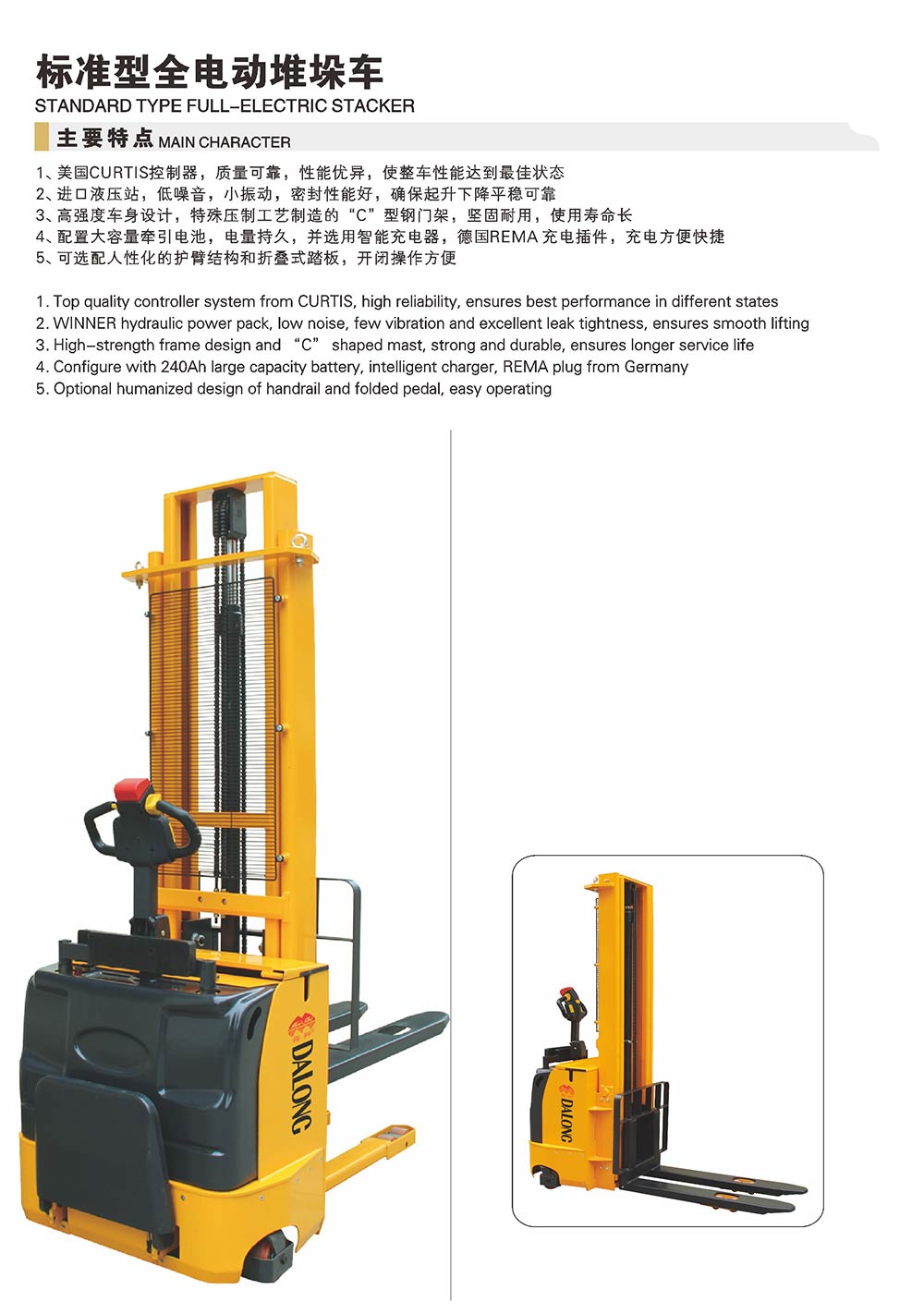 無(wú)錫大隆電工機(jī)械有限公司主營(yíng)電動(dòng)叉車,手動(dòng)搬運(yùn)車,電動(dòng)堆垛車,電動(dòng)搬運(yùn)車等,規(guī)格達(dá)上百種,多次通過(guò)國(guó)家質(zhì)量技術(shù)監(jiān)督部門的質(zhì)量鑒定,信譽(yù)高,值得選購(gòu)!