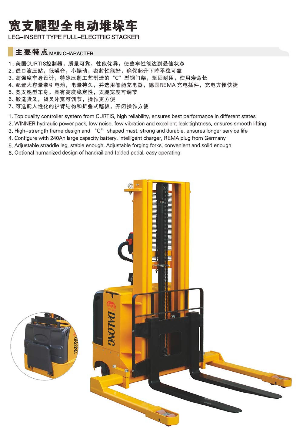 無錫大隆電工機(jī)械有限公司主營(yíng)電動(dòng)叉車,手動(dòng)搬運(yùn)車,電動(dòng)堆垛車,電動(dòng)搬運(yùn)車等,規(guī)格達(dá)上百種,多次通過國(guó)家質(zhì)量技術(shù)監(jiān)督部門的質(zhì)量鑒定,信譽(yù)高,值得選購(gòu)!